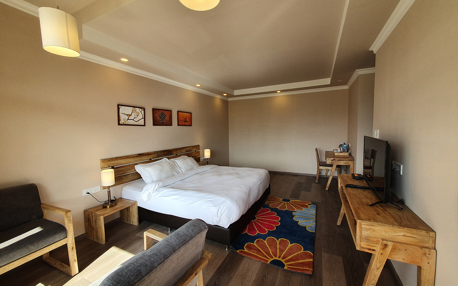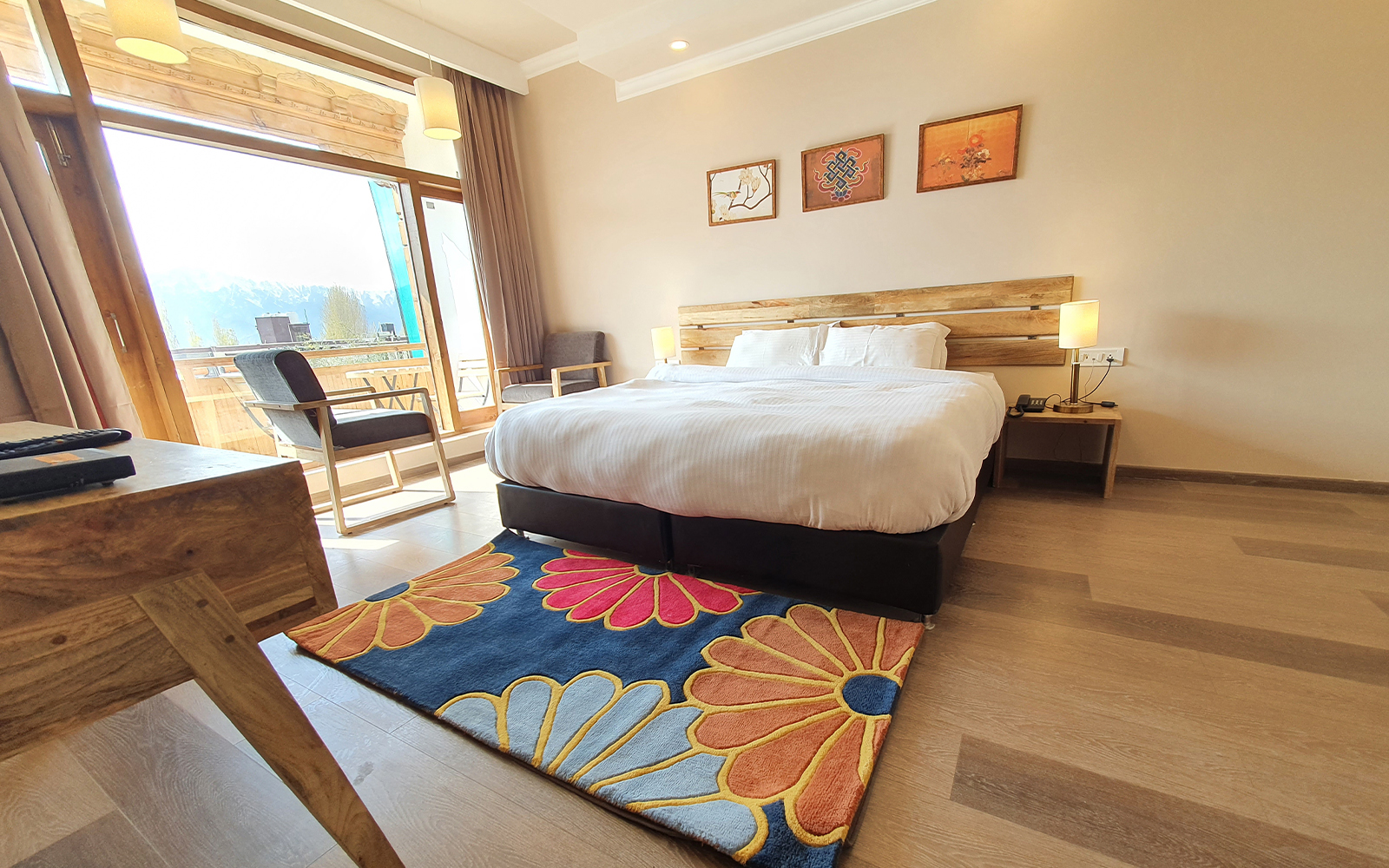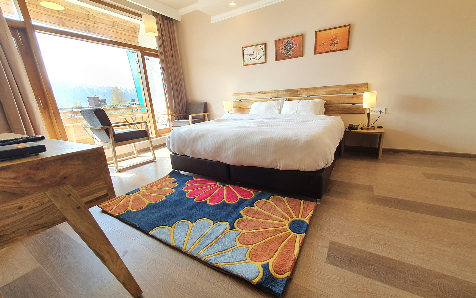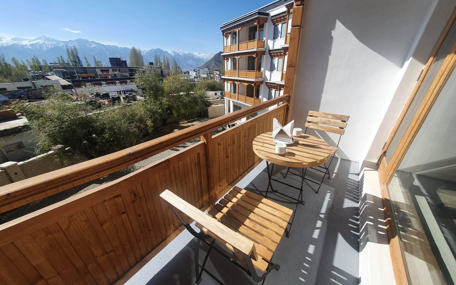 Located right in the center of Leh town with the vibrant and historic main market only two to three minutes walk away the location cannot get any better. This new traditionally designed boutique hotel offers sweeping views of the mountain ranges and boasts of some unique features.